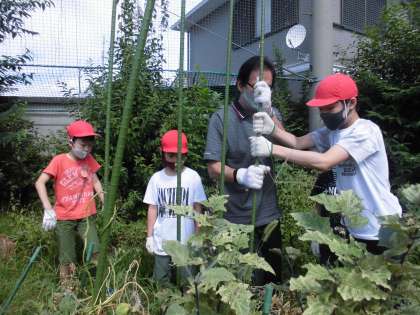 自分が育てていた野菜を抜き,みんなで畑をきれいにしました。