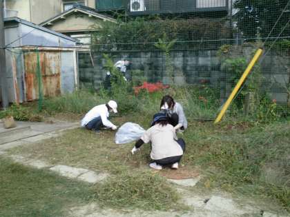 運動場や花壇,遊具下などの草刈りをしていただきました。