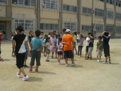 中間休みにたてわりグループでおにごっこをして遊びました。