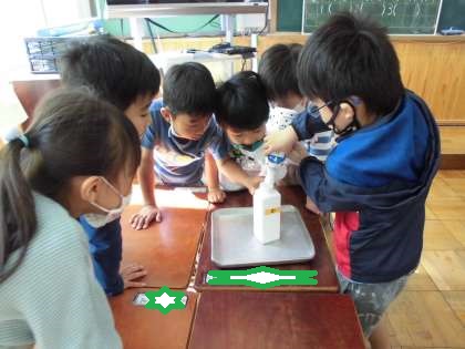 算数の勉強で,容器に水の入る量を比べる,かさ比べをしました。
