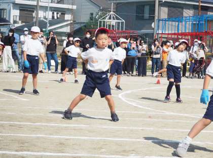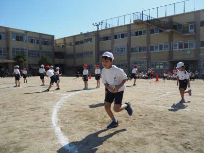秋晴れのもと,ソーシャルディスタンスを考慮して「体育発表会」が開催されました。