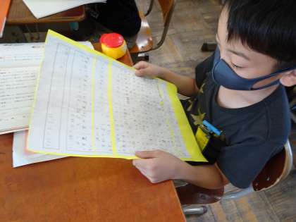 国語科「仕事のくふう,見つけたよ」の成果物の交流をしました。友達の書いた文章を真剣に読む姿が印象的でした。今回学んだ文章を書く時のポイントを今後の学習に生かしていってほしいです。