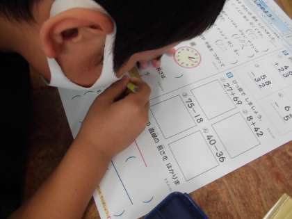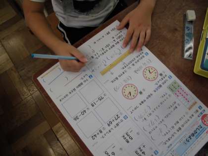 算数科では「たしかめよう1」のテストに取り組みました。自主勉強で取り組んだり,前回のどんどんタイムで練習したりした成果が出たようです。