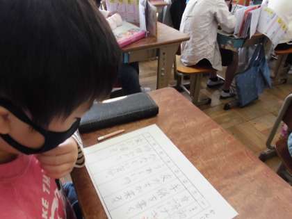 宿題の漢字ノートを3回すると小テストに挑戦しています。丁寧な字で書く子が増えてきました。