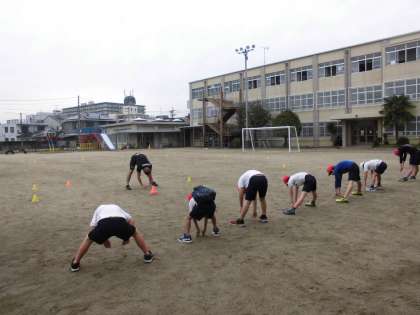 身体を準備体操でしっかりほぐし,リレーに臨みます。