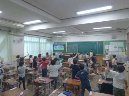 ビデオに合わせてみんなで楽しく歌って踊りました。