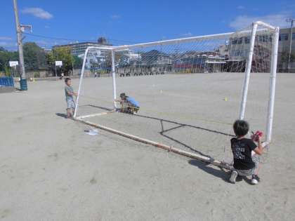 この日の学習では,ペアで運動場のいろんなものの長さを測りに行きました。サッカーゴールの横幅・うんていの長さ・丸太ベンチの太さなど普段何気なく見たり使ったりしているものの正確な長さを知り,体験したことが,今後長さの見当をつけることなどにつながっていけばと思います。