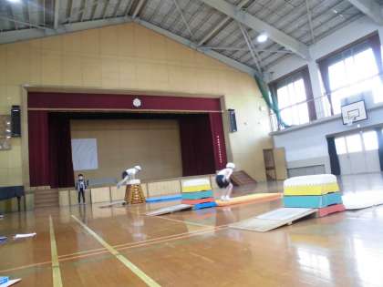 体育科では,「とびばこあそび」では最後に開脚とびにチャレンジました。縦・横と自分ができそうな向きで取り組みました。何度もやっていく中で,とべる子が増えてきました。中には6段をクリアする子も。ふり返りでは,「とぶのが楽しかった」という子がたくさん見られました。