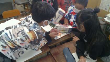 腕の筋肉と動きの関係がどうなっているか,牛乳パックで作った模型を使って調べました。グループで話し合いながら,腕の動きについて考えを深めることができました。