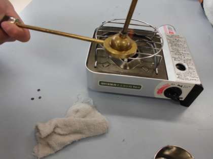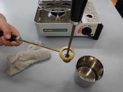 温める前は,輪を通っていた金属の玉が,熱すると輪を通らなくなり,もう一度冷やすと,輪を通り抜け,「おぉ〜!」「すごい!」と感動している子がたくさんいました。自分で確かめてみると,変化もよくわかりましたね。