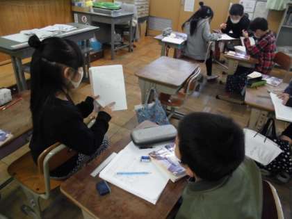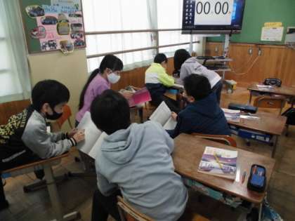 自分の考えを式だけではなく,そのわけを言葉で説明したり,図を使って考えたり,くわしくノートにまとめることができている子どもたちが増えてきました。友達と意見を交流するときにも,自分のノートを見せ合いながら話し合ったり,「同じ意見です」「つけたしがあります」などのハンドサインを使って話し合ったりすることが少しずつできるようになり,一人一人の成長が感じられます。