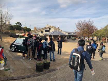 イングランドの丘は敷地がとても広く、シャトルバスで移動します。グループ行動でいろんな所を見学しています。
