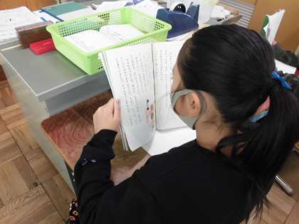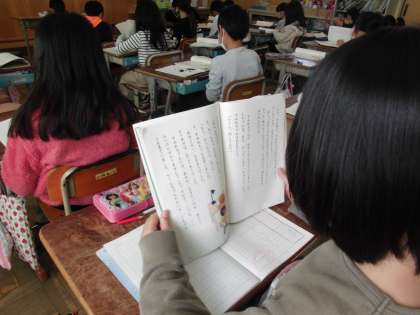国語科「わたしはおねえさん」では,はじめに範読を聞きました。よい姿勢で聞けているのは,とても立派でした。
