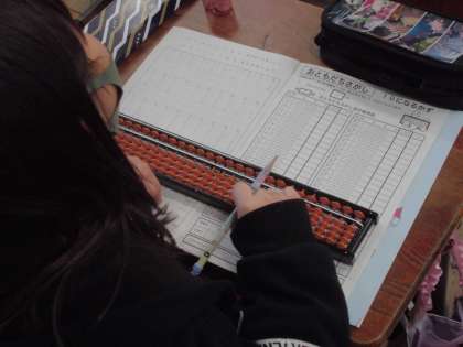 説明を聞きながら,少しずつそろばんに慣れていきました。