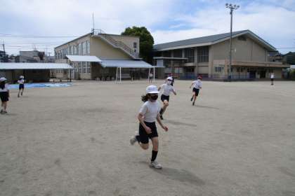 はじめは,おにごっこで運動場を駆け回り,汗を流しながら楽しみました。