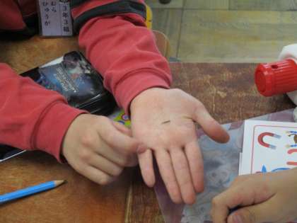 ホウセンカ,マリーゴールド,ダイズ,オクラ,ヒマワリ。3年生は5つの植物を育てます。5つの種をよく観察し,どの種がどの植物かを予想しました。