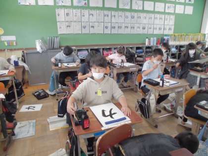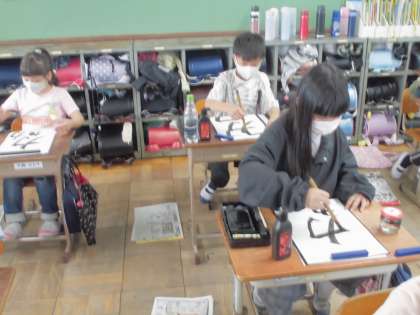 「試し書き」をしてから,どこを気をつけて書くのか考え,練習し清書をします。