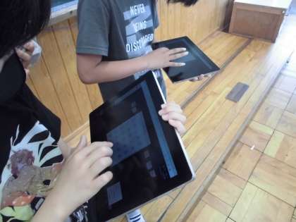 外国語活動の時間にタブレットを使って交流しました。自分の好きなものを英語と簡単なイラストで作成し,英語で伝えあいました。作成したものを,友だちと送ったり受け取ったりして,楽しく交流することができました。