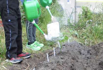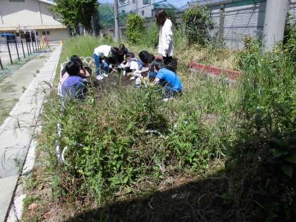 畑をたがやして,草を抜いたり肥料をまいたりしました。収穫して食べるのを楽しみにして,みんなとてもがんばって活動しました。12日(水)には,自分が選んだ野菜の種をまいたり,苗を植えたりしました。「早く大きくなって」と声をかけながら水やりをしました。成長が楽しみです。