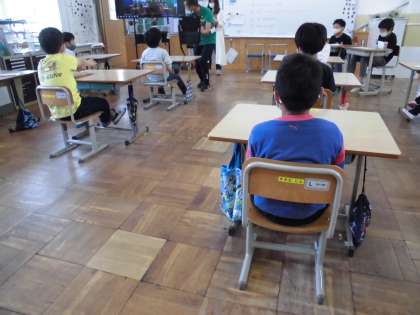 南区の育成学級のなかよし会をしました。今年は2校ずつのオンライン交流で,本校は,祥豊小学校と交流しました。交流会では,南区に新しく来た友だちの紹介を写真で見たり,クイズ大会をしたりしました。6年生は,司会を担当して進めてくれました。