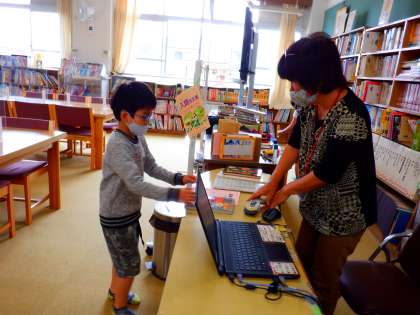 水曜日と木曜日は,学校司書の先生が来ています。図書室の使い方を教えてもらったり,本の貸出をしてもらったりしています。