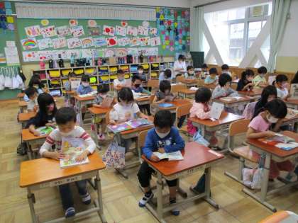 音楽が流れたら,本を用意し,しずかに読書をします。