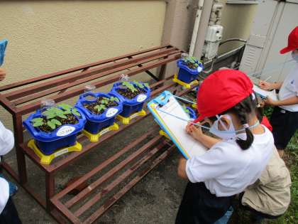 1年 あさがおの芽を観察したよ