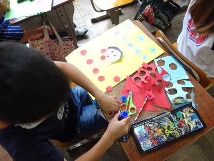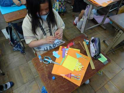 飛び出す仕組みを使って,気持ちを伝えるカードを作りました。どんな形や色で作ろうか,子どもたちは想像を膨らませて取り組んでいました。