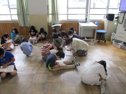 どんどんタイムなどを活用し,国語の時間に,調べ方を学習した国語辞典を使って,様々なゲームをしています。この日は,教室を4つに区切り,それぞれのポイントでお題である言葉を調べ,ゴールを目指すゲームをしました。ゴールをした子が,お題の言葉を見つけられず,困っている子の支援に回る姿も素敵でした。