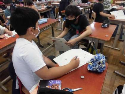 文にまとめていると,普段使う話し言葉を書き言葉としても使っていることに気付き,言葉の難しさについて改めて時間している様子が見られました。