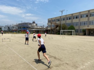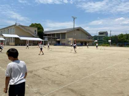 体育科でハードル走に取り組んでいます。
