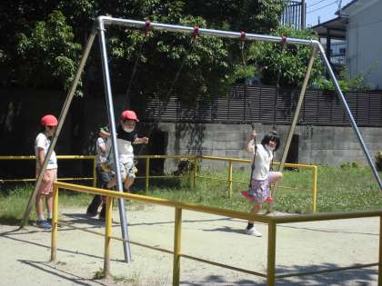 晴天の中,西浦西公園方面に探検に出かけました。様々な商店や工場を見学した後は,おたのしみの公園遊びです。ほんとうに楽しそうで,仲良く遊んでいる姿に気持ちがあたたかくなりました。