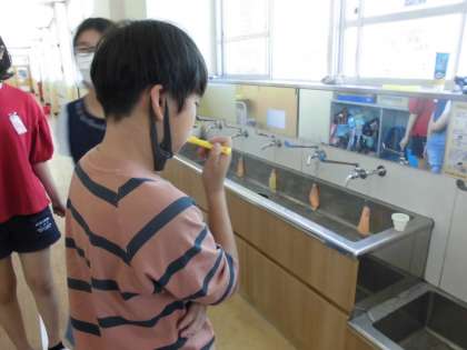 検診の後はいつも以上に歯を丁寧に磨く姿が見られました。