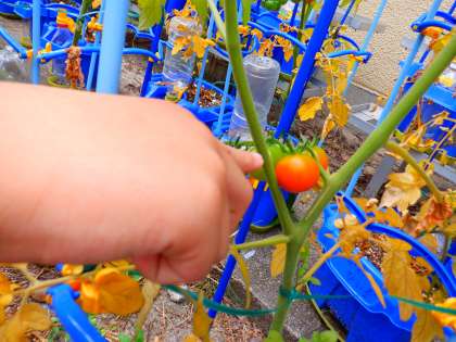 生活科で育てている「ミニトマト」が,赤くなってきました。収穫まで,もう少しですね。子どもたちは,大興奮でした。