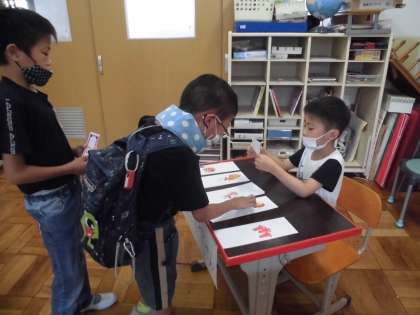 お客さん役は,友だちが開いているお店に行き,楽しそうに買い物をしている姿がみられました。