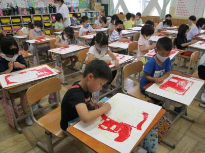 1年 図工 真っ赤な消防車