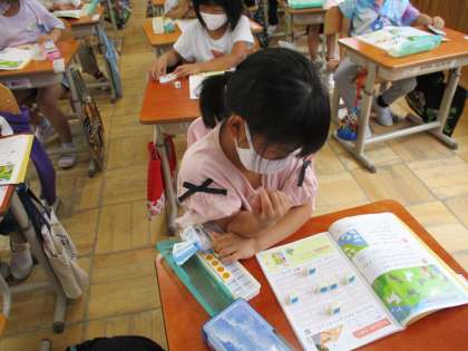 算数で,たし算の学習をしています。