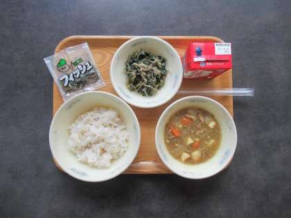 麦ごはん・牛乳・和風カレーどうふ・ほうれん草ともやしのごま煮・じゃこでした。