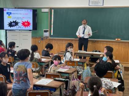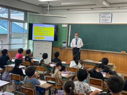 非行防止教室を行いました。非行防止教室では警察官の方にゲストティーチャーとして来ていただき,授業をしていただきました。「いじめや万引きなどをした場合,社会ではどのような罪になるのか」という内容を学んだり,「これって犯罪?」というクイズ内容の形式で楽しく学習したりしました。警察官のお話を聞き,「今後も法に触れることはしない!」と決意している児童がたくさん見られました。