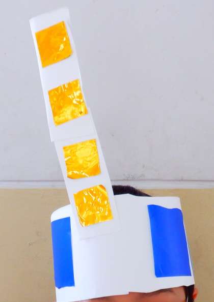 輪にかざりをつけて,自分が変身するものをつくりました。