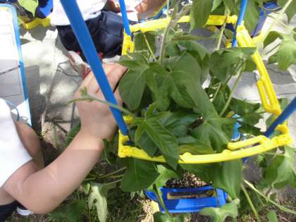 これまで,生活科でアサガオの観察をしてきた子どもたち。国語科で,「色・高さ・におい・形・太さ・触った感じ・大きさ・数・重さ」などに気を付けて観察してみようという学習をしたので,今回は目や鼻や手を使って分かること中心に観察日記に残すことにしました。これまでに気付かなかったことがいろいろと出てきて,観察名人に近づいた子どもたちです。