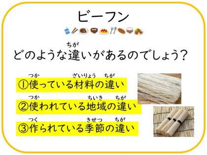 ビーフンとそうめんは見た目が似ていますが,どのような違いがあるでしょう?