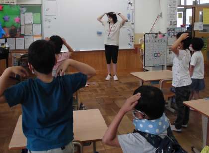 24日(木)の英語は,ALTの先生の授業でした。「ハロー!」と元気な英語の挨拶から始まりました。手遊びをしたり,絵本を読んでもらったり,お店屋さんをしたりしました。とても楽しい時間になりました。