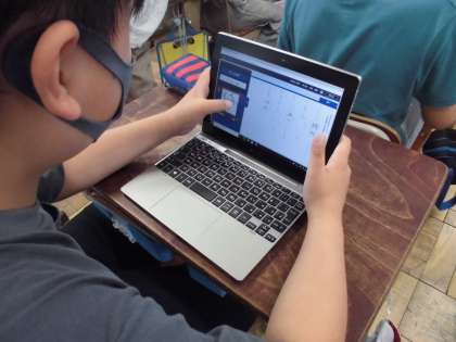 本日から,タブレットでドリルが使えるようになりました。漢字のドリルを行いました。正しい書き順で書いていないと丸がつきません。普段とは違った学習方法で子どもたちも楽しみながら取り組んでいました。