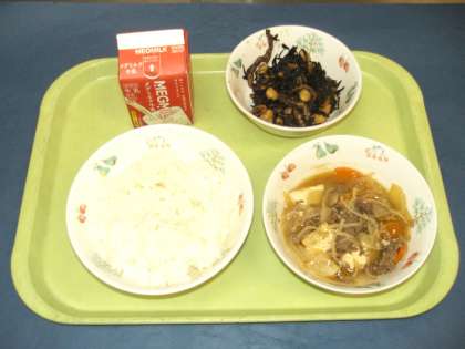 「ひじき豆」に入っているひじきと大豆にはおなかのそうじをする食物繊維が多く含まれています。ご飯との相性も良く昔から食べられてきたおかずです。