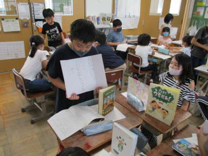 まいごのかぎを読んだことをいかして,自分の選んだファンタジー作品を友達に紹介する活動を行いました。不思議な出来事を通して,登場人物がどのように変化したのかをしっかりと伝え,「読んでみたい!」の声をたくさんもらうことができました。