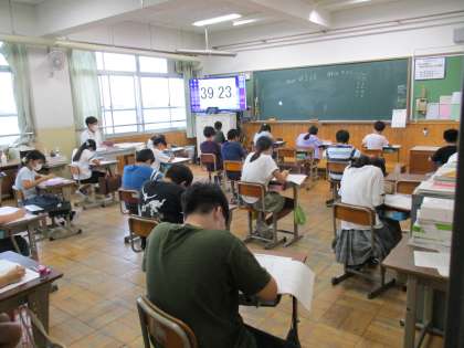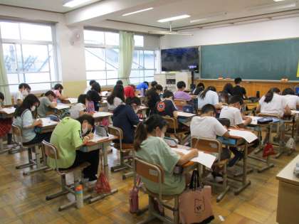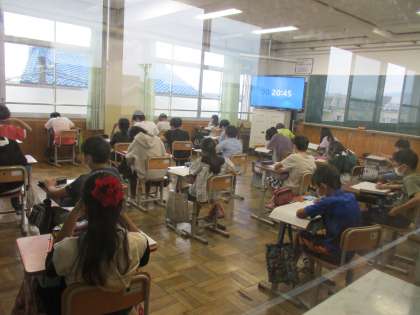 今日と明日の2日間で,5・6年生は今年度最初のジョイントプログラムに取り組みます。今日は算数を実施しました。明日は国語が予定されています。今まで学習してきたことの確認テストです。事前の復習の成果が出せるようにがんばってほしいものです。また,返却された後は,自分の間違ったところや苦手なところをしっかり見直して実力アップにつなげてほしいと思います。明日もがんばってください。