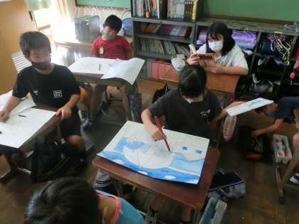 色付けでは,水の量の調整に苦戦しながらも,満足のいく作品に