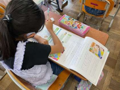 道徳の時間に「ごめんね,サルビアさん」というお話を通して,生き物を育てたり飼ったりする上で大切なことを考えました。自分たちが1年生のころにアサガオを育てた経験や,家で育てている生き物を思い返しながら考え,お話に共感している人がたくさん見られました。