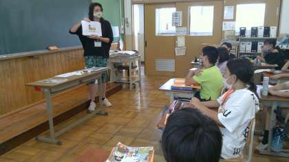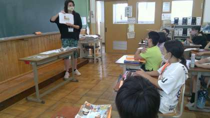 今日の外国語の学習では,モンタナ先生に来ていただき,ジェスチャーゲームやメモリーゲームを行って楽しく学習しました。